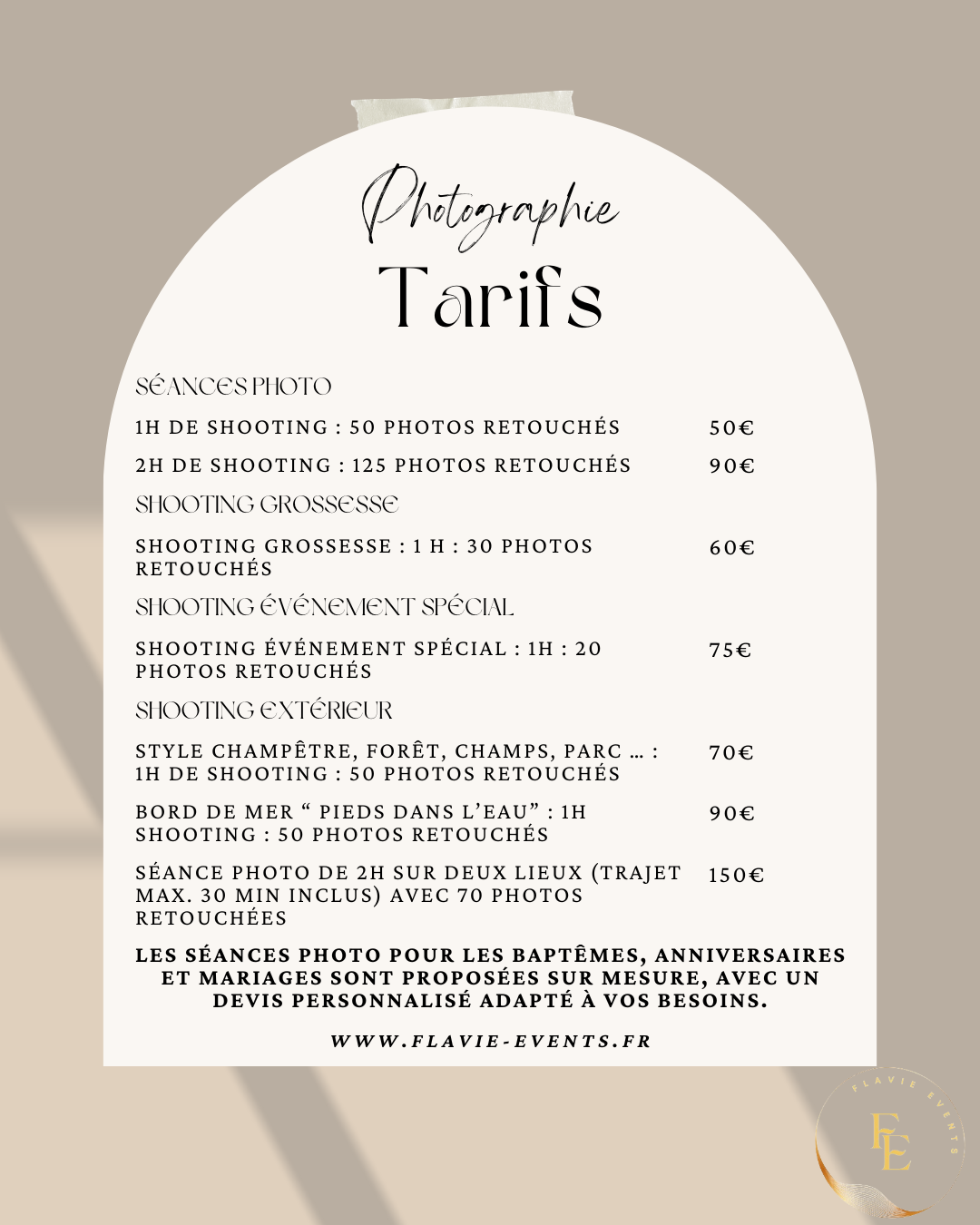 Chaque projet étant unique, nous proposons des prestations sur mesure selon vos besoins et votre budget.
